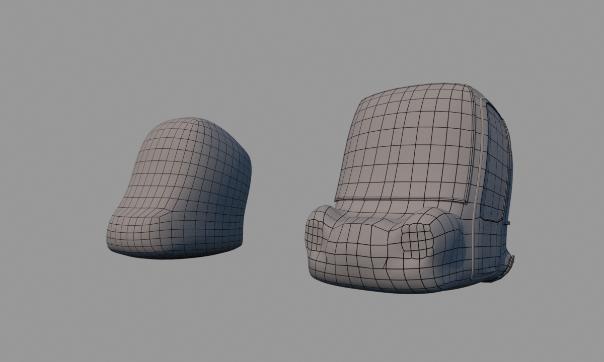 Progress from my cartoon prop modeling build. The image to the right shows the smoothing approaches used to hard surface features. The image to the left shows a basic blocking pass. This was my first time using a blocking approach to create a stylized prop. I used different shape modifiers to establish the silhouette before I moved onto a more detailed pass.